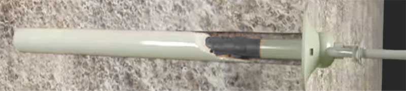 Mortar gets pumped through the hole in the grouting head to fill the annular space from bottom of hole out to the spherical bearing plate.
